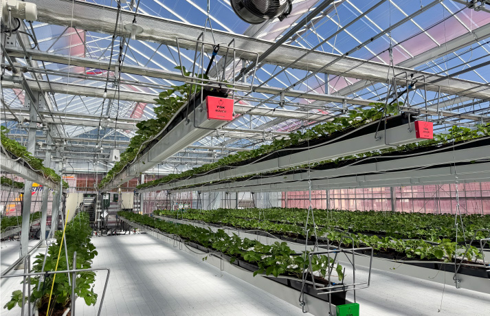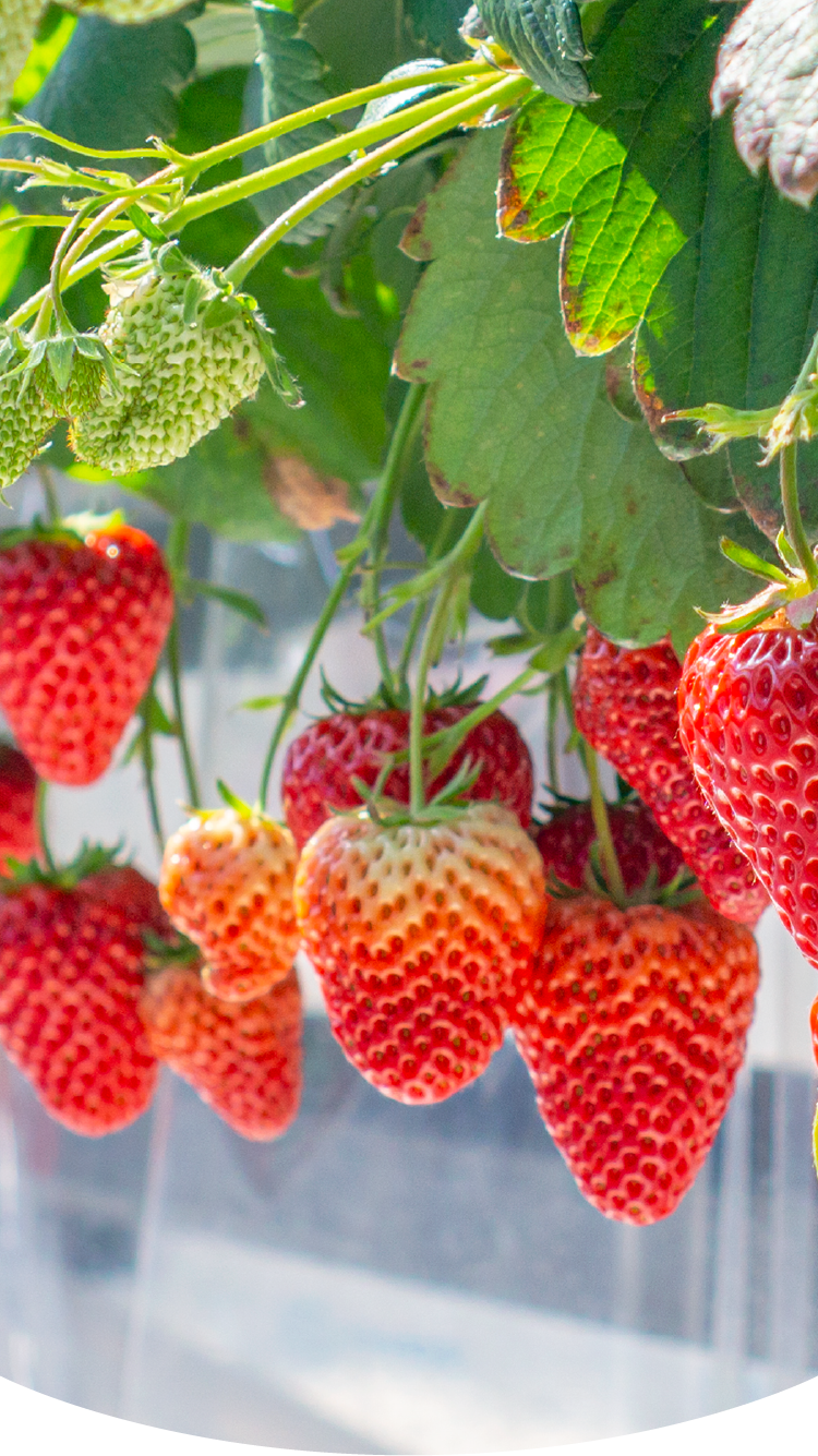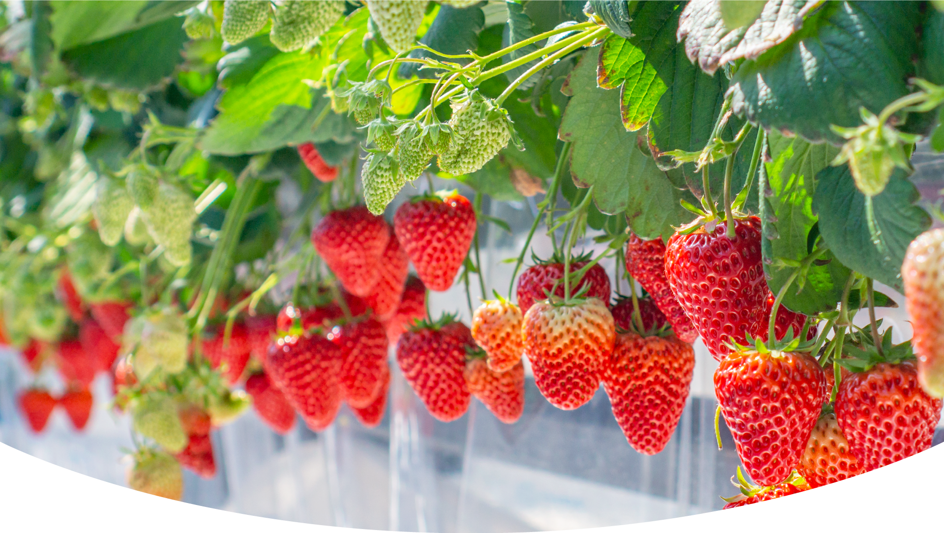 高品質ないちごづくり出雲ICHIGO縁では、温度・湿度・日射量などをリアルタイムで測定するセンサーをハウス内に設置し、イチゴの生育に最適な環境を自動制御しています。ICT技術を活用することで、生産性と品質の向上を実現していきます。