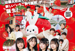 NEWSお知らせ 各種SNSでも情報発信中! いちご狩りがもっと楽しくなるオプション登場! 2026.1.31 1月15日は「いちごの日」!! 2026.1.11 本日1月7日(水)は営業します 2026.1.7 新年あけましておめでとうございます! 2026.1.1 「出雲ICHIGO縁」1月7日にグランドオープン! 2025.12.19 ホームページをリニューアルオープンしました。 2025.12.19 一覧を見る 自然エネルギーと愛情をこめて育てた赤いイチゴでみんなをHAPPYに! そして地球の未来にHAPPYをプレゼント! ここがすごいよ出雲ICHIGO縁 詳細はこちら 出雲ICHIGO縁で できること いちご狩り 最新の設備と技術で育てられたプレミアムないちご。制限時間は40分です。"すず""よつぼし""スターナイト"3種類のいちごを食べ放題。味の違いもお楽しみください。 詳細はこちら 結ベリーショップ いちごショップでは、ICHIGO縁で採れた新鮮いちごやいちごの加工品のほか、いちごスイーツ専門店「ICHIBIKO」の商品なども取り揃えました。 詳細はこちら 結ベリーカフェ テイクアウト専門店カフェでは、トレーラーハウスでオリジナルスイーツやドリンクなどを販売しています 詳細はこちら PARK MAP園内マップ 虫眼鏡のアイコンを押すと、園内の詳細を確認することができます いちご狩りハウス 最先端ICTを備えた広大な栽培ハウス。 宙に浮かぶプランターでいちごが育つ光景は圧巻です。 いちご狩りについてはこちら 結ベリーショップ 縄を使用した外観が特徴的なお土産物ショップ。キャラクターであるうさぎのモニュメントもあり写真スポットにも! 結ベリーショップについてはこちら 結ベリーカフェ とってもベリーないちごを使用したメニューをカフェテラスでお楽しみいただけます。 結ベリーカフェについてはこちら 大型駐車場 大型バス7台、乗用車85台、思いやり駐車スペース4台の大型駐車場を併設。 ACCESS交通アクセス 〒699-0722 島根県出雲市大社町北荒木1521-4 出雲大社より 車で約7分 山陰自動車道 出雲ICより 車で約15分 一畑電車大社線 浜山公園北口駅より 徒歩で約10分 GoogleマップはこちらからGoogleマップはこちら
