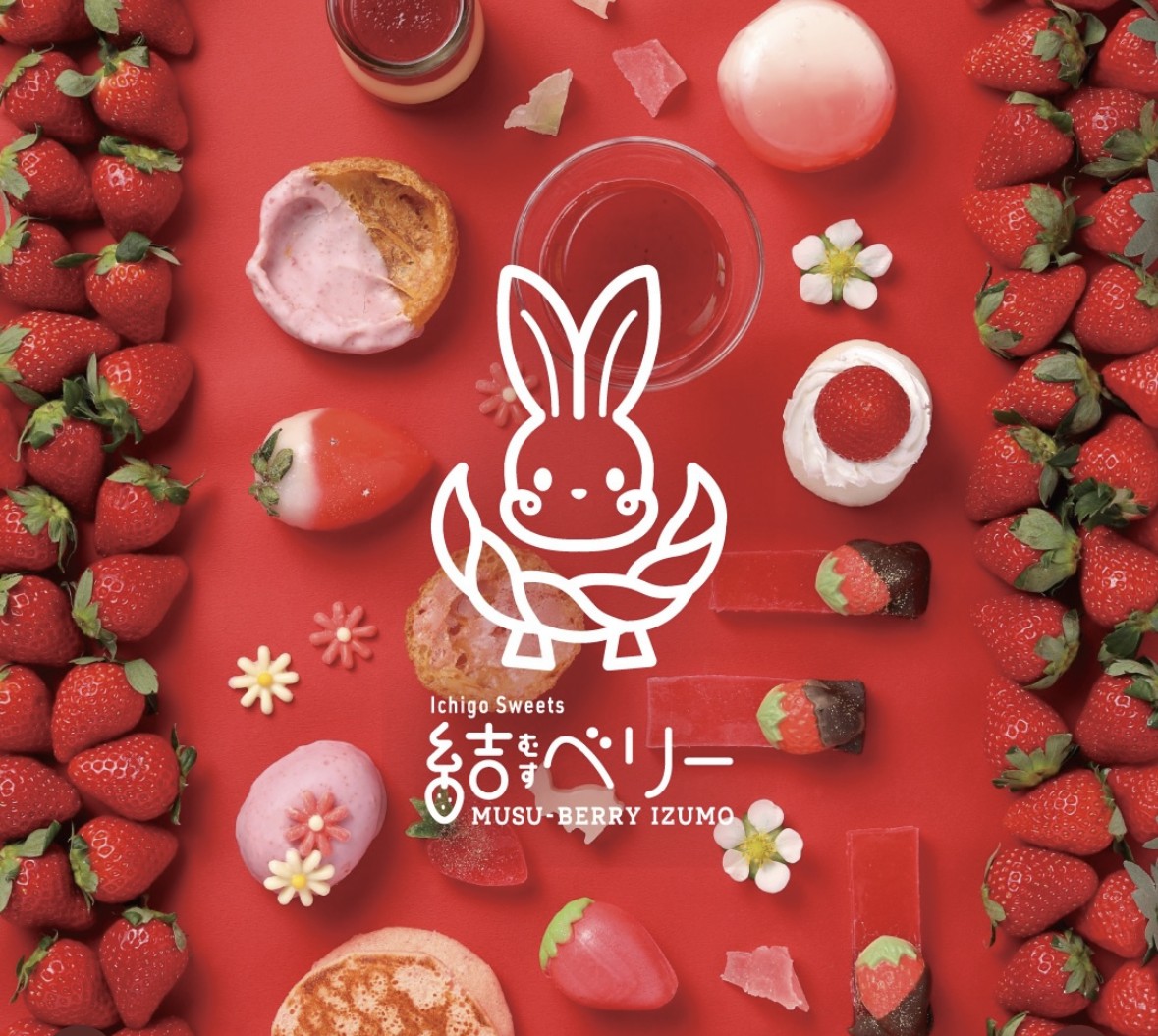 ウサギのキャラクターデザインに囲まれた結べリーショップでのお買い物、カフェ