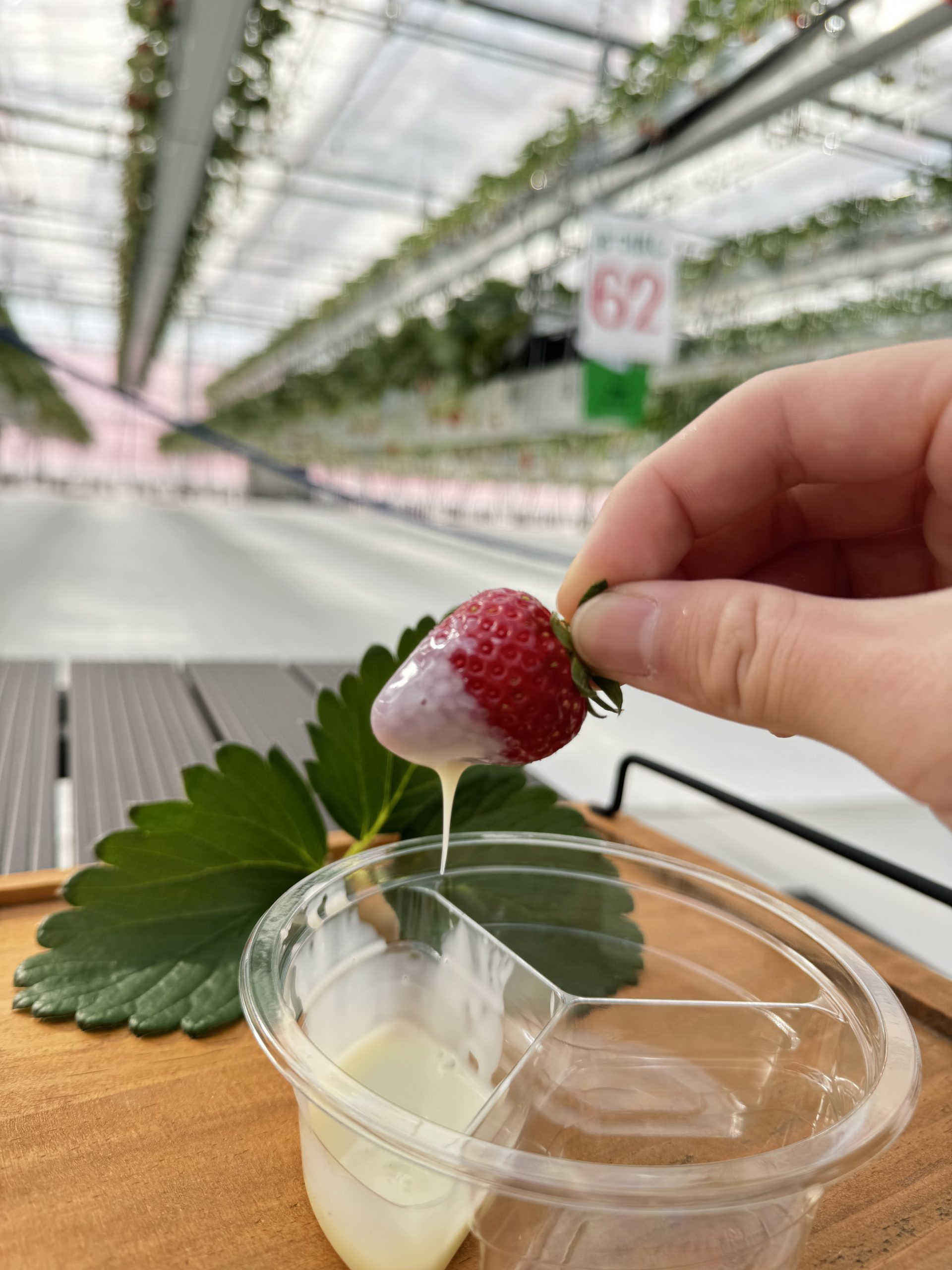 甘いいちごに練乳やチョコソースをたっぷりかけて、いちご狩りの合間にイチゴ大福をお楽しみいただけます。