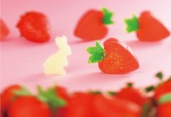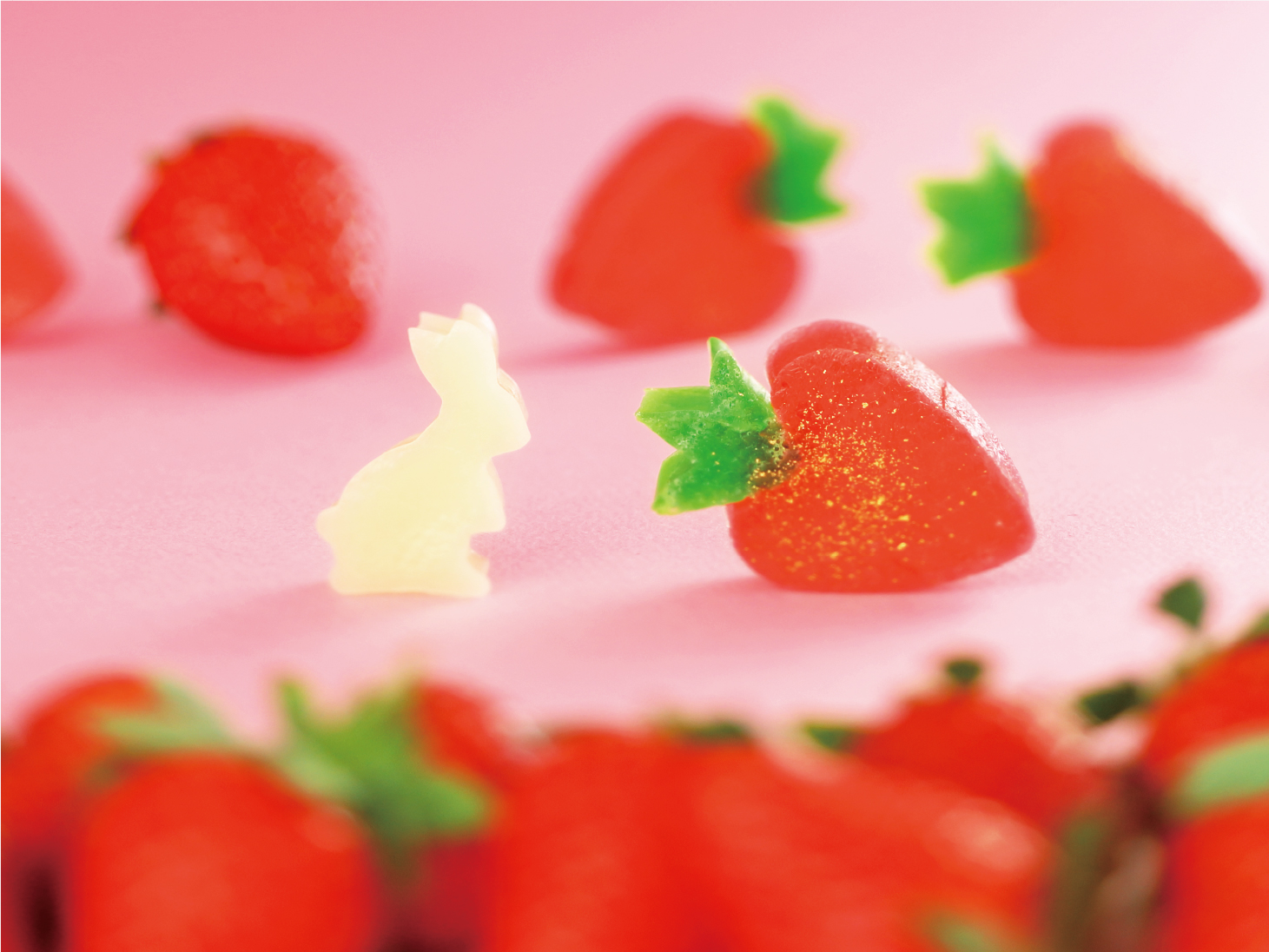 結ベリー琥珀糖甘酸っぱいいちごが、かわいいカタチのまま琥珀糖に変身。すてきなご縁を呼ぶ結ベリーのうさぎと一緒に召し上がれ。 -