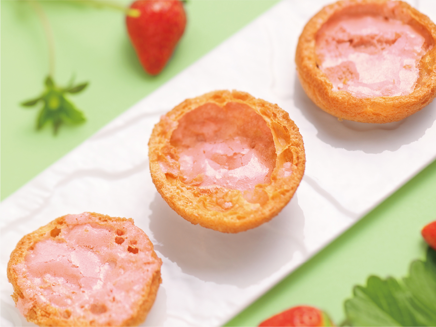 結ベリーラスクさくさくシュー生地を特製いちごバターでじっくり焼き上げました。食べた瞬間幸せほろほろ、結ベリーいちばんの推しスイーツ。